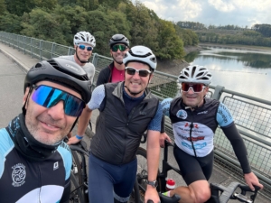 Diese führte tief ins Oberbergische Land bis zur Ennepetalsperre als Wendepunkt. Auf dem Rückweg erlebten die Fahrer das gesamte Wetterspektrum: in der Sonne angenehme 20 Grad, in den Tälern dagegen kühle 10 Grad – Radfahren in all seinen Facetten.