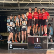 Während die Temperaturen beständig stiegen, ging es in 4 Runden durch den Landtagspark. Angefeuert von den mitgereisten TMH-lern, Judith, Regina und Stefan – an dieser Stelle ein riesengroßes Danke an die besten Fans, die es gibt – liefen unsere 5 Athleten der Ziellinie entgegen. Diese erreichte Janik nach einer Laufzeit von 40min 49Sek und einer Gesamtzeit von 2h 14min 25sek und sicherte sich so den siebten Platz im Feld der Landesliga. Als zweite TMH-lerin kam Lise mit einer 10km-Zeit von 41min und 42sek ins Ziel und finishte nach 2h 22min 44sek als dritte Frau auf dem 28ten Platz der Landesliga. Julien wurde nach einer Laufzeit von 42min 56sek und Gesamtzeit von 2h 29min 08sek 46ter und Thorsten rundete nach gelaufenen 48min und 50sek das Liga Team nach 2h 36min und 37sek ab. Rouven finishte den Lauf in 46min und 06sek und wurde mit einer Gesamtzeit von 2h 21min und 17sek 45ter im Feld der Einzelstarter.